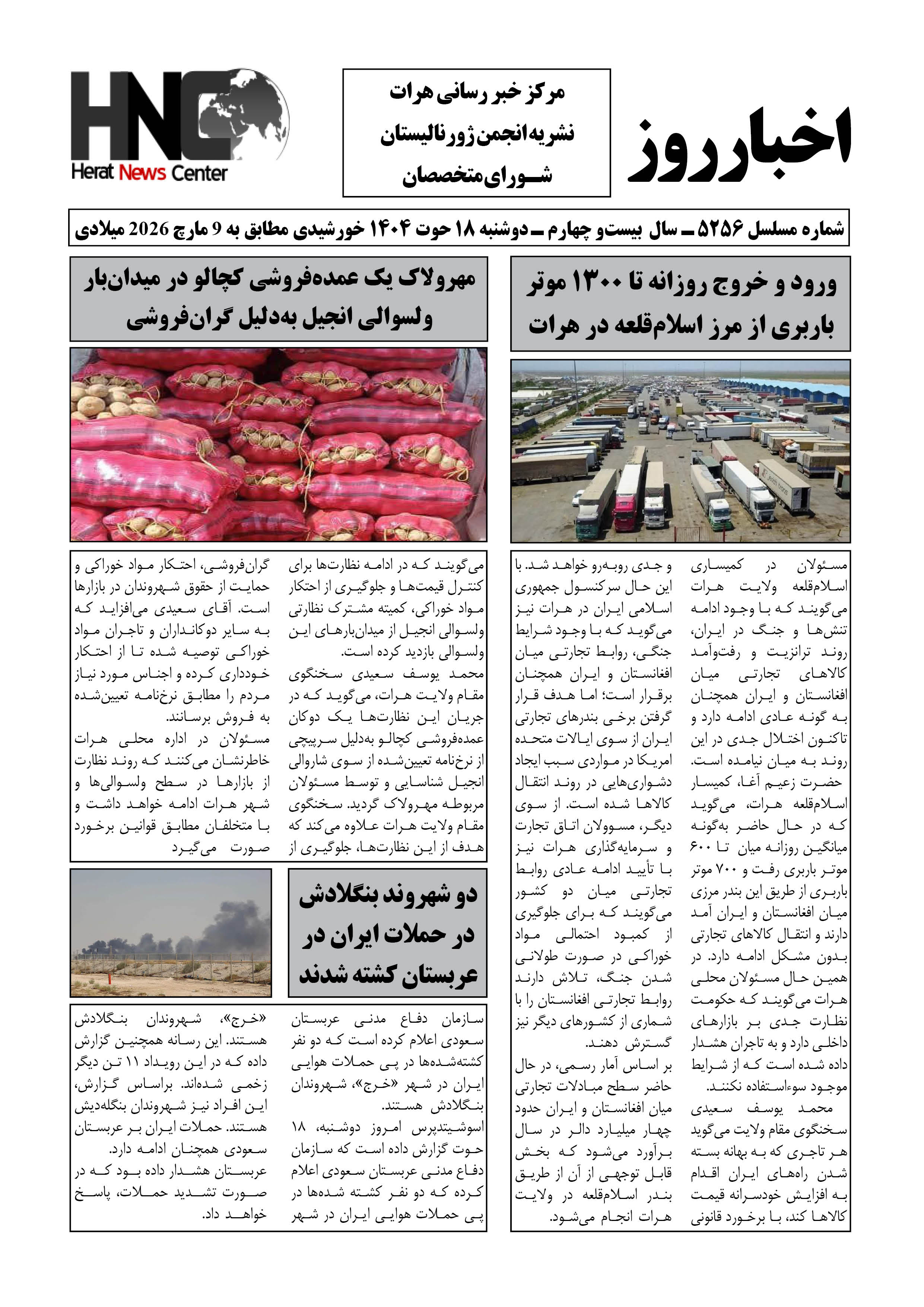 شماره 5256 روزنامه اخبار روز