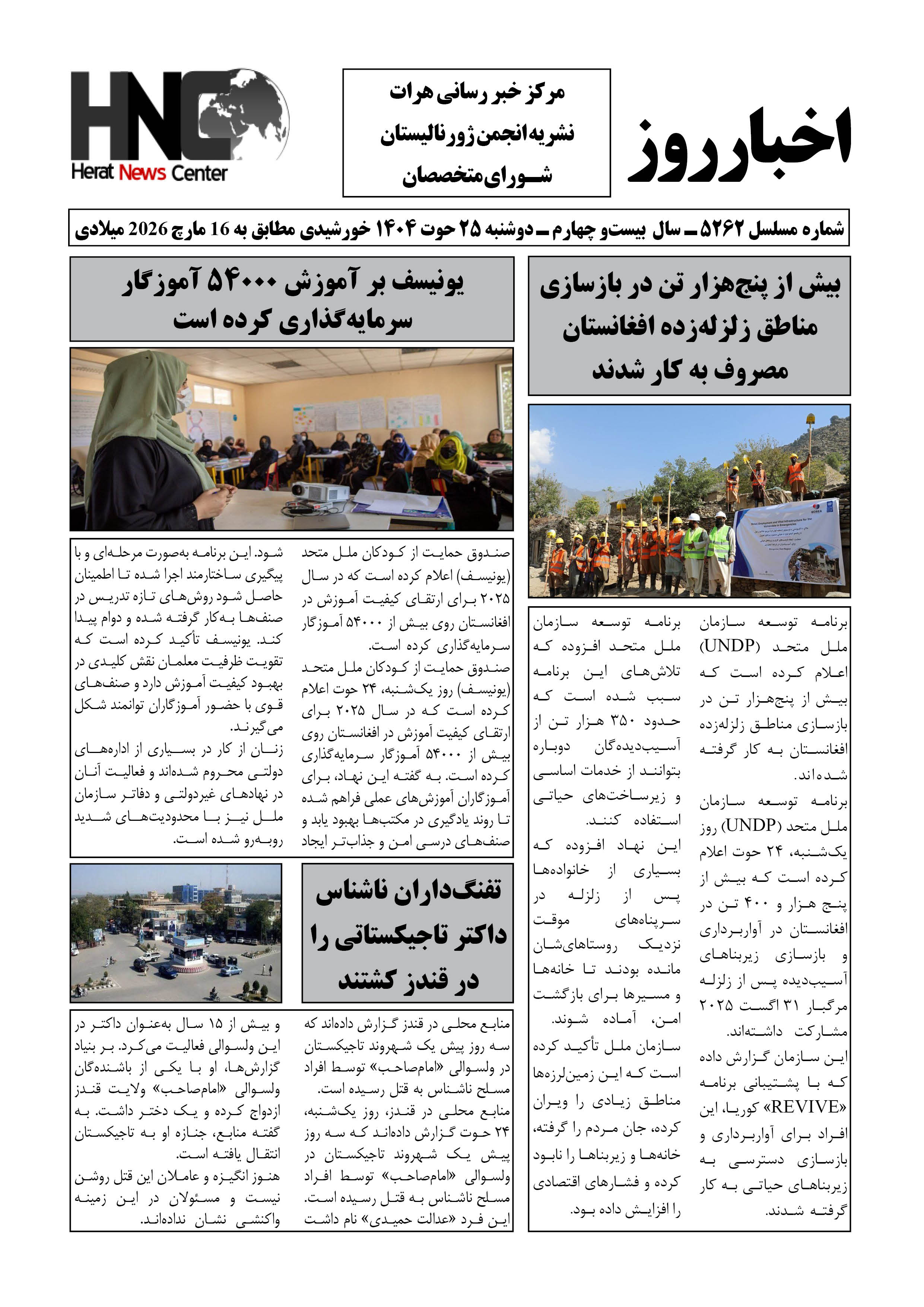 شماره 5262 روزنامه اخبار روز